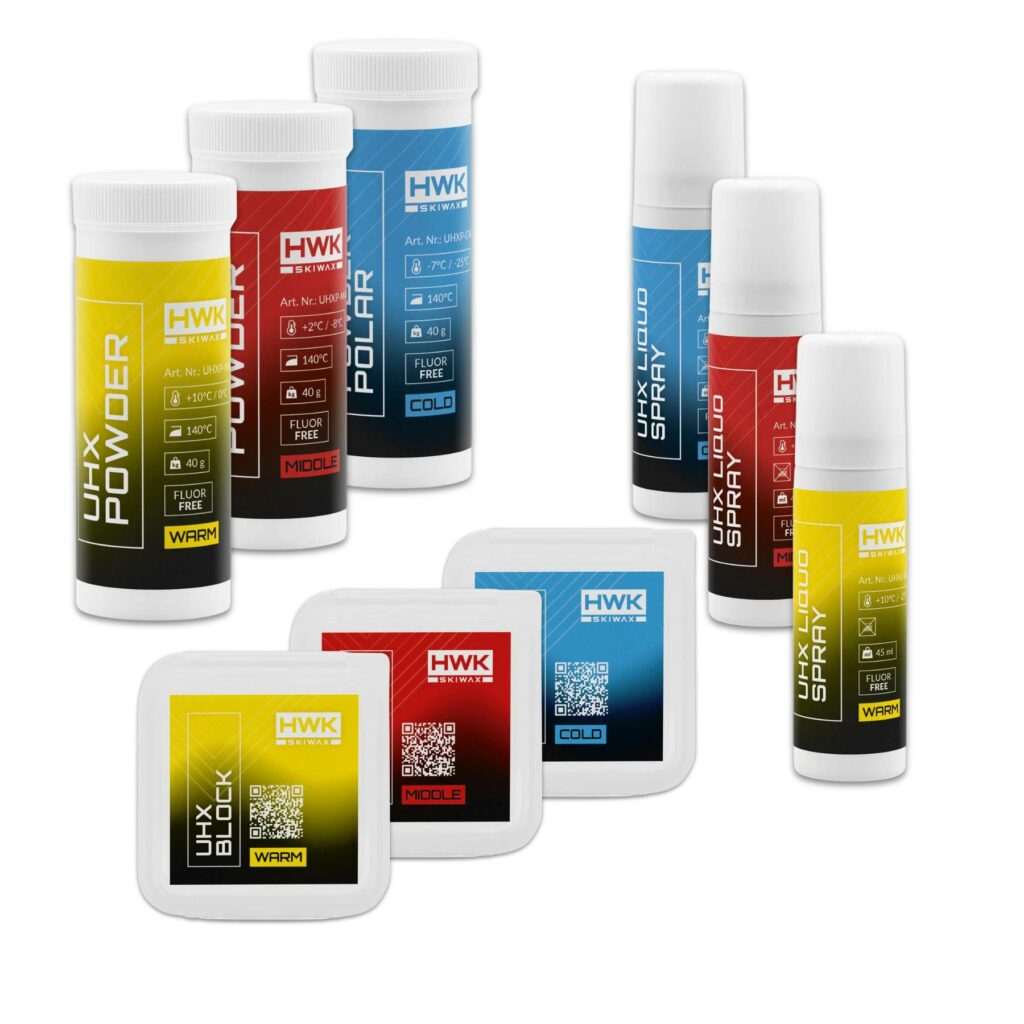 Toppen av produktutvalget vårt er UHX-gruppen. Her presenterer vi våre absolutte topprodukter for fluorfri racing. Disse voksene er utviklet med høyeste presisjon og tilbyr uslåelig ytelse for å ta deg til topps i løpene.
